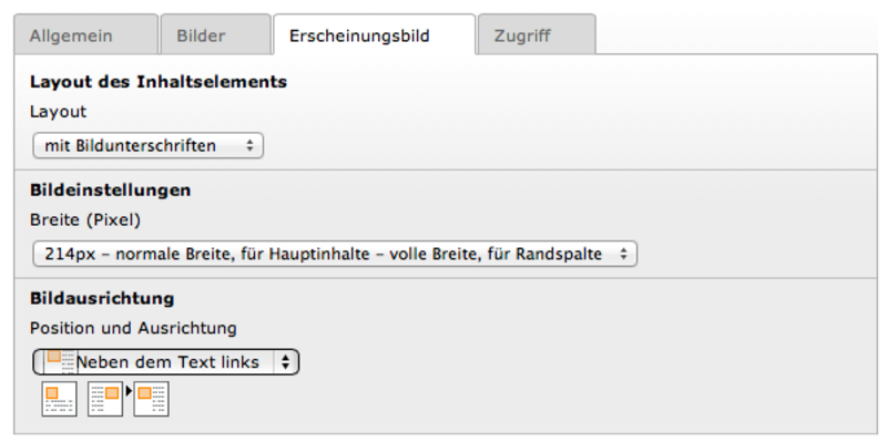 • Bilder, deren Position neben dem Text links oder rechts ist, dürfen ebenfalls nur 214px breit sein (normale Breite, für Hauptinhalte).