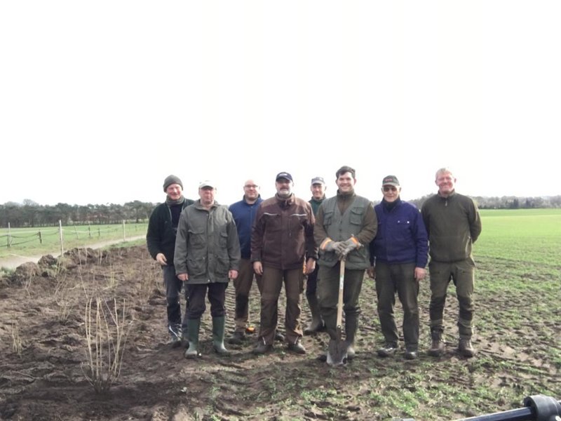 Auf einem 360m langen und 3m breiten Ackerstreifen haben 8 Waidgesellen des Hegering Ahlhorn in kürzester Zeit 600 Sträucher gepflanzt, um so den Insekten und damit dem Niederwild eine Nahrungsquelle bzw. einen Rückzugsort zu bieten.