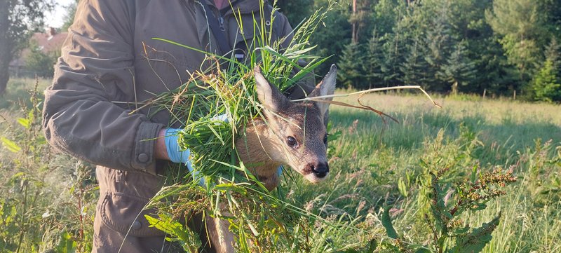 Seit letztem Jahr unterstützen die Jäger die Landwirte bei der für sie verpflichtenden Suche nach Jungtieren vor der Mahd. Dafür wurden durch Spenden zwei Drohnen finanziert, mit der die Drohnenpiloten und Helfer ehrenamtlich in den frühen Morgenstunden Felder und Wiesen abfliegen, um Jungtiere aus dem Gefahrenbereich zu bringen. Im Anschluss kann der Landwirt mähen, ohne dass Tiere dabei zu Schaden kommen.