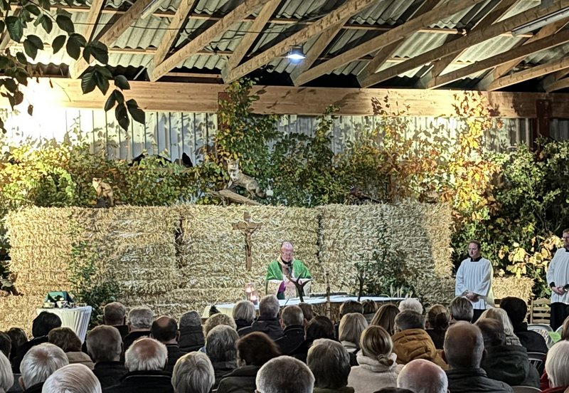Am darauffolgenden Sonntag, den 3. November 2025, einen Tag vor dem Heiligen Hubertustag, fand auf dem Hof Wassenberg in Kroge-Ehrendorf die diesjährige Heilige Hubertusmesse statt. Der Hof war liebevoll und jagdlich geschmückt. Hegeringsleiter Alois Dumstorff begrüßte zu Beginn alle Anwesenden und zeigte sich sichtlich gerührt über die große Besucherzahl.