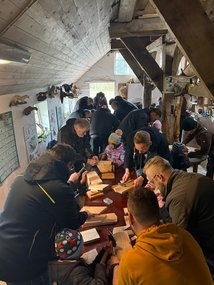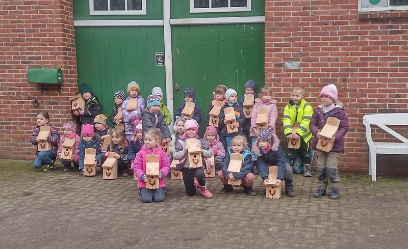 Am 22. Februar 2025 fand, wie in jedem Jahr, die Nistkastenbauaktion des Hegerings Rastede Nord statt. Zu dieser Veranstaltung kamen insgesamt 32 Kinder der Kindergärten Hahn-Lehmden und Heubült mit einem Elternteil und den Erzieherinnen auf den Hof von Familie Grimm in Hahnermoor. Begrüßt wurden die Teilnehmer zünftig mit dem Jagdhornsignalen „Sammeln der Jäger“ und dem Signal „Begrüßung“. Im Anschluss daran wurden die Kinder in zwei Gruppen aufgeteilt. Eine Gruppe baute zunächst vorgefertigte Meisennistkästen, eine weitere Gruppe startete zu einem kleinen Revierbegang. Nach einem gemeinsamen Frühstück zur Stärkung wechselten die Kinder ihre Aufgaben.