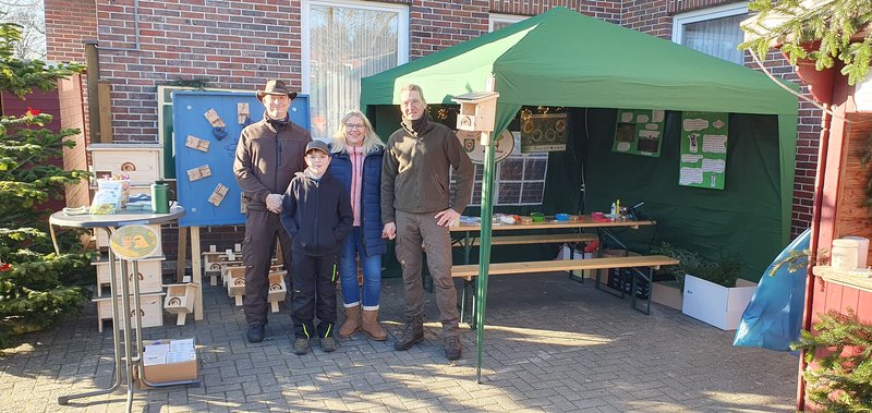 „Die Falkenaugen“ haben auch überschüssige Igelhäuser und Halbhöhlenbrutkästen, aus den beiden vergangenen Treffen, auf dem Weihnachtsmarkt an Interessierte abgegeben. Die Kids informierten dabei auch über den richtigen Standort und die Reinigung.