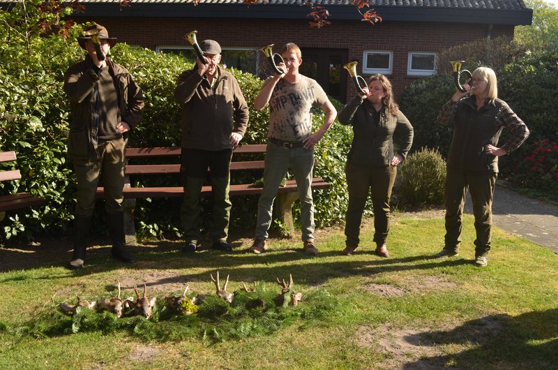 Die revierübergreifende Fuchsjagd der Hegeringe Rastede Nord und Süd wird bereits seit 35 Jahren durchgeführt. Hegeringleiter Lutz Wemken bedankte sich bei dem ehemaligen Kreisjägermeister Günther Wemken für die stets gute Organisation. Er appellierte an die Teilnehmer, die Prädatorenbejagung nicht zu vernachlässigen. Im Anschluss an das Schüsseltreiben boten die Hundeführer den Revierinhabern, die nicht regelmäßig ihre Baue kontrollieren an, diese bei Bedarf noch zu unterstützen.