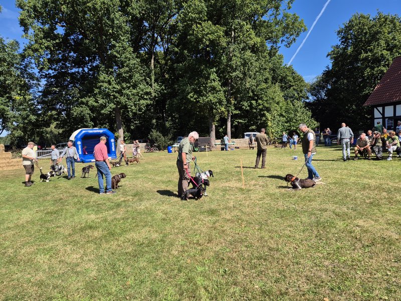 Durch Walter Galisch, Hegering Osnabrück- Nord, wurde dann um die Mittagszeit fachkundig die Vorführung diverser Jagdhunderassen - vom Teckel bis zum Schweißhund - moderiert.