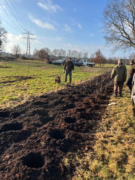 Am Sonntag, den 01. März 2026, wurde am Birkenweg auf einer rund 5.000 Quadratmeter großen Grünlandfläche eine neue Streuobstwiese angelegt.