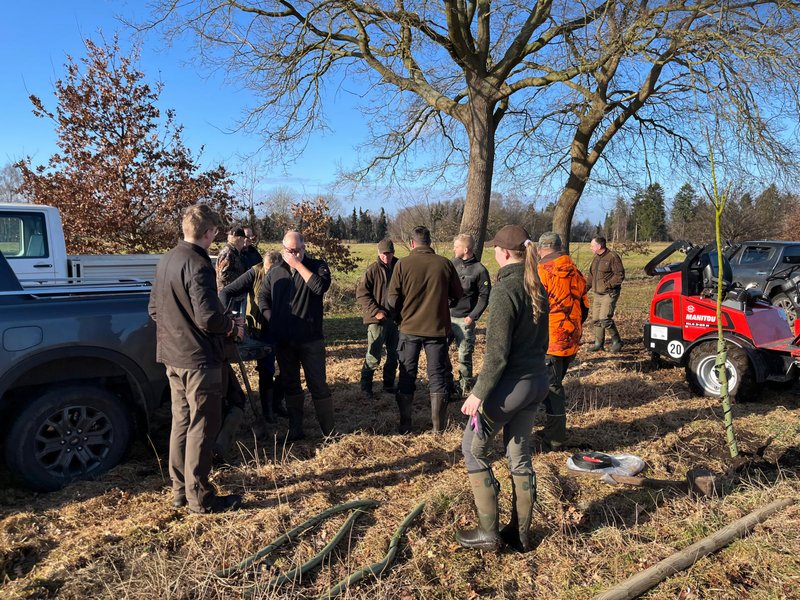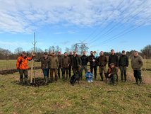 Die Fläche wurde von der Familie Patrick Zemke zur Verfügung gestellt. Die Pflanzaktion erfolgte durch engagierte Jägerinnen und Jäger des Jagdbezirks Kayhauserfeld.
