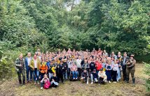 Aber auch das Jagd-Info-Mobil der Jägerschaft Aschendorf-Hümmling mit über 80 Tierpräparaten und ein kleines Mobiles Waldinfomobil der Waldmenschen des Hegerings Werlte erfreute sich mit den Fachlichen Erklärungen von Ann-Christin Fligg und Ihren Unterstützern großer Beliebtheit unter den Schülern. Der zweite Tag spielte sich im Forstort „Herrentannen“ der Arenberg-Meppen GmbH in der Nähe der Hünensteine von Werlte ab. Die Teilnehmer, die angereist waren, wurden zuvor bereits in Sechsergruppen eingeteilt, um sicherzustellen, damit eine aufmerksame und übersichtliche Gruppe an den insgesamt sechs Stationen betreut werden kann.