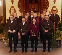 Nach fast 40-jährigem Einsatz übergibt Carl August Riemenschneider die Leitung des Bläsercorps an Doris Bartzik.