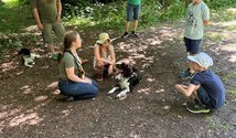 Die schönste Zeit im Jahr ist für viele Kinder die Zeit der Sommerferien. Da scheint die Sonne, man ist viel draußen, man kann spielen, herumtollen oder spannende Dinge erleben, die man in der Schule eher nicht lernt. Bei der Ferienpass-Aktion der Stadt Einbeck mit der Jägerschaft Einbeck bei bestem Wetter auf der Hube haben Kinder jetzt erfahren, wie unterschiedlich es sich anfühlt, wenn sie in einer dunklen Kiste Kastanien, Kiefernzapfen, Mais, Buchenlaub, Fell oder die Abwurfstangen eines Rehbocks ertasten und dabei raten dürfen, um was es sich wohl handelt. Im Wald gingen sie auf Entdeckungstour nach Spuren und Tieren und beim Darts-Werfen auf eine Wildschwein-Zielscheibe konnte jeder seine Geschicklichkeit ausprobieren. Wie gesucht werden muss, wenn man das Wildschwein auf der Scheibe nicht gut trifft, erlebten die Kinder bei der Suche von Gegenständen im Wald mit echten Jagdhunden. Überhaupt waren die Hunde eine ganz besondere Attraktion. Sie helfen Jägern bei der waidgerechten Jagd. Dabei gehört es zu ihren Aufgaben, auf das Kommando „Apport!“ zum Beispiel den Fuchs oder Hasen zu bringen, Enten aus dem Wasser zu holen oder die in Rüben gefallene Elster oder Krähe zu finden. Zum Ausprobieren haben die Kinder eine Gummi-Ente versteckt und die Hunde zum Suchen geschickt. Und damit man die echte Ente, den Hasen, das Kaninchen usw. anschließend auch noch zubereiten und essen könnte, mussten die Hunde beim Apportieren vorsichtig arbeiten und durften die Beute nicht knautschen.