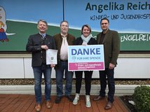 Am 15. Januar überreichte der Leiter des Hegerings Wilhelmshaven, Stephan Gäbelein, gemeinsam mit seinen Vorstandskollegen Benedikt Wagner und Volker Michael eine Spende in Höhe von 850 Euro an die Leiterin des Kinder- und Jugendhospiz Joshuas Engelreich Sandra Ecke. Die Jäger des Hegerings Wilhelmshaven haben ihre Nutria-Prämien zusammengelegt und auf der Weihnachtsfeier um weitere Spenden aus dem Kreis der Mitglieder gebeten. Die Nutria-Prämien werden von den Wasser- und Bodenverbänden Friesland/Wilhelmshaven zur Eindämmung von Schäden an Ufern und Deichen, verursacht durch die Nutrias, bereitgestellt. Nach der Spendenübergabe führte Ecke durch die Einrichtung und berichtete von der beeindruckenden Arbeit des Hospizes. Einen Teil seiner Ausgaben muss die Einrichtung dabei durch Spenden selbst erwirtschaften. Bei dem Rundgang konnte sich der Vorstand des Hegerings dann noch mit farbigen Handabdrücken auf der Spendenwand verewigen.