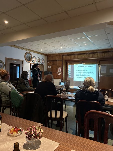 Sabine, die Wirtin vom Schützenhaus, sorgte mit einem köstlichen Mittagessen – Braten, Nudeln und Pilzsoße – für das leibliche Wohl, abgerundet durch eine Eisbombe als Dessert. Der Tag bot außerdem Gelegenheit für einen regen Erfahrungsaustausch und die Ausstellung der Schießnachweise.