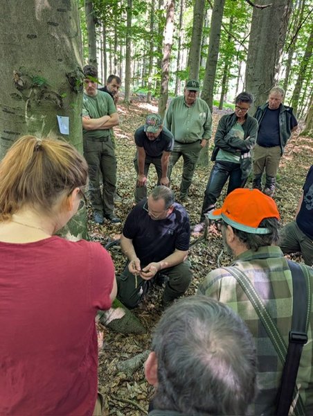 Auf verschiedenen vorbereiteten Anschüssen konnten die Teilnehmer das Erlernte direkt anwenden. Mit viel Engagement und wachem Blick wurde jedes Zeichen geprüft und der Anschuss „ausgearbeitet“. An jedem Anschuss teilten die Referenten mit Witz und Charme ihre Erfahrungen und ihr Fachwissen aus vielen eigenen Nachsuchen mit den Teilnehmenden. Im Verlauf des Seminars wurden auch zwei häufige Fragen aus der jagdlichen Praxis ausführlich besprochen: