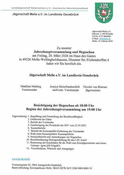 2026 Einladung zur Jahreshauptversammlung und Hegeschau