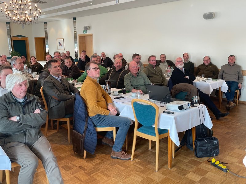 Vor über 60 Teilnehmern referierten Herr Jürgen Meyer, Landwirtschaftliche Berufsgenossenschaft und Sven Lübbers, Leiter des Jägerlehrhofes Jagdschloss Springe,