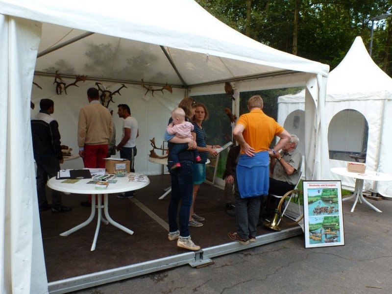 Informationen und Spiele für Kinder. GECKO ist ein Förderverein, der Spenden sammelt für die Einrichtung und Versorgung des Kinderpospitals zum Wohle der kleinen Patienten, weil diese mehr als eine rein medizinische Versorgung benötigen. Bisher realisierte Projekte sind z.B. Klinik-Clown, Spielplätze, endoskopische Neurochirurgie, ein Röntgengerät für Frühgeborene etc. Das Waldfest fand bei herrlichen Sommerwetter im Heger Holz direkt neben dem sog. "Spenderwald" statt, der vor einigen jahre von großzügigen Spendern zugunsten GECKO wiederaufgeforstet wurde nach dem Orkan Kyril. Die kleine "Festmeile" am Rande des Spenderwaldes bot den rund 300 Besuchern, darunter viele Kinder, ein buntes Programm an Musik, Informationen und Unterhaltung (Jagdbläser, Teckel-Club,Jägerschaft). Viele Besucher waren zu direkten Spenden an den Förderverein bereit bzw. wurden Fördermitglieder. Das Jägerschaft-Infozelt besuchten viele Kinder, Jugendliche und Erwachsene und stellten viele Fragen zu den Tierpräparaten/Schautafeln der heimischen Tier-und Vogelwelt. Die Kinder konnten an Schnitzeljagd und Ratespielen (Pflanzen, Tiere, Präparate)teilnehmen und kleine Preise wie Sticker, Malhefte und Tierbroschüren gewinnen. Das Waldfest war insgesamt ein großer Erfolg für GECKO und auch für die Jägerschaft