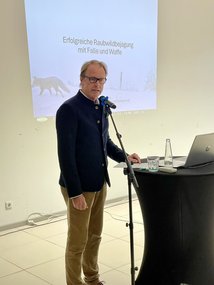 Als Referent konnte Marcel Holy gewonnen werden, der in einem kurzweiligen Vortrag die wichtigsten Schritte zur Raubwildbejagung mit Falle und Waffe erläuterte. Er betonte: „Je großflächiger die ganzheitliche Bejagung umgesetzt wird, desto größer wird auch der Erfolg sein.“ Damit wurde in den Ausführungen klar herausgestellt, dass Jägerinnen und Jäger ihre Pflicht zur Hege wieder stärker mit ihren eigenen Ansprüchen als Naturschützer in Einklang bringen sollten.