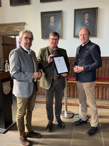 Prof. Martin Thieme-Hack, Obmann für Naturschutz, Thomas Schomaker, Vorsitzender Natur-Netz Niedersachsen e.V., und Frank Frintrop, Vorsitzender der Jägerschaft, (v.l.) bei der Übergabe der Auszeichnung