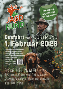 Es wird auch in diesem Jahr wieder eine Busfahrt zur Messe "Jagd und Hund" in Dortmund angeboten.