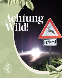 •    Warnschilder und -hinweise auf Wildwechsel ernst nehmen