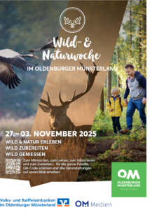 Vom 27. Oktober bis 3. November 2025 findet die Wild- und Naturwoche im Oldenburger Münsterland statt. Die Jägerschaften Cloppenburg und Vechta beteiligen sich als Partner intensiv und gestalten viele der abwechslungsreichen Veranstaltungen rund um Jagd, Wald, Moor, Tiere, regionale Kultur und Wildbret mit.